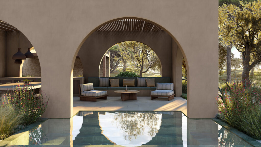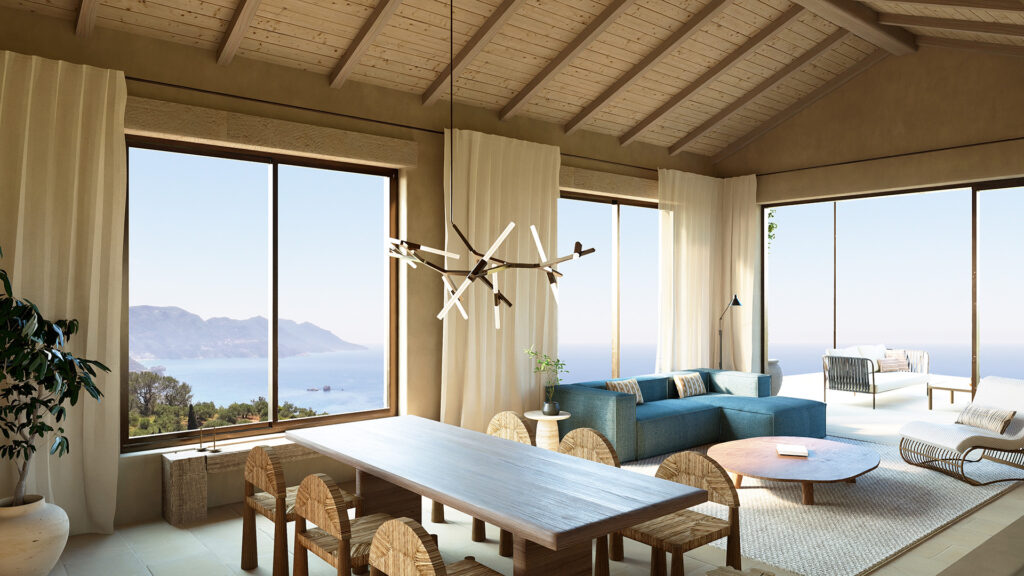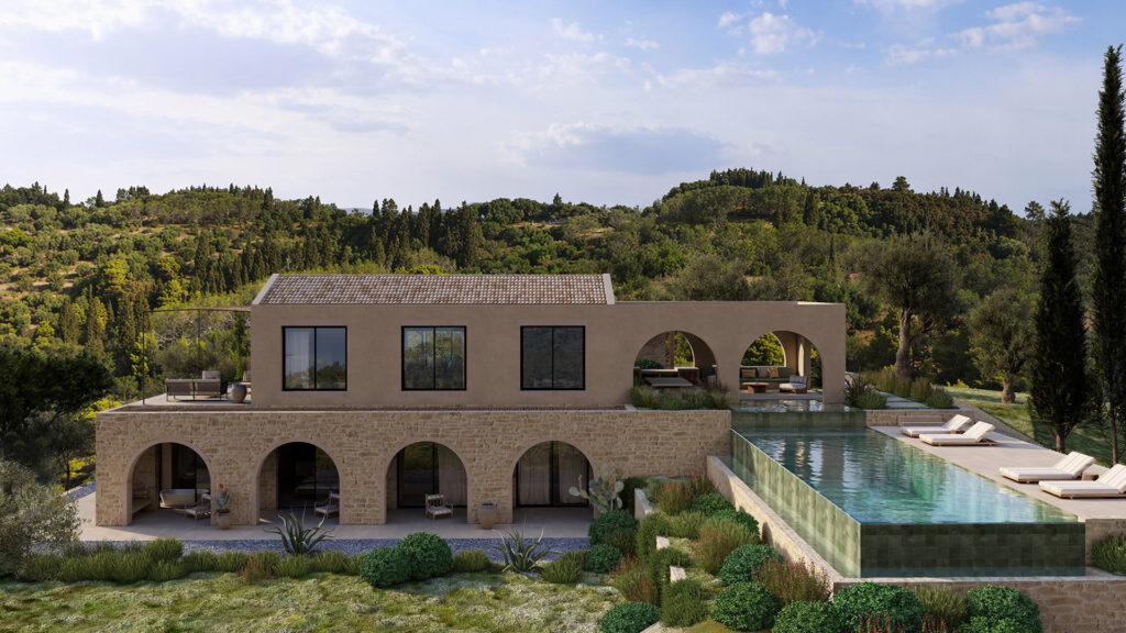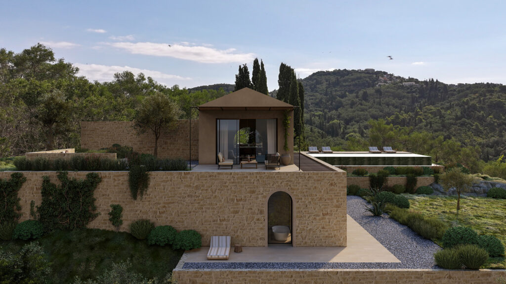The proposal aims to create a contemporary residence that is both rooted in the landscape of Corfu and open to its surroundings, reinterpreting local architectural elements through a clear and contemporary approach.